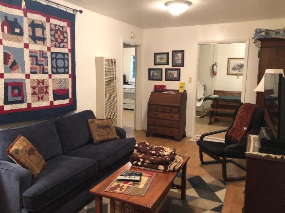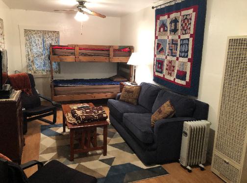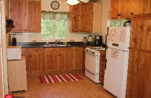 | Kitchen with usual appliances & microwave. bed. Bathroom has shower. Living room has queen sleeper sofa and twin bunk. Picnic table and charcoal BBQ on porch deck. No cooking condiments. Wireless Internet (some of the time!) |